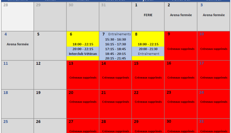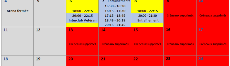 Voici les créneaux loisirs et entrainements disponibles pour le mois de janvier.